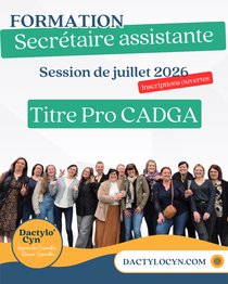 En juillet, Dactylo'Cyn ouvre une session de sa formation "Devenir secrétaire assistante". Obtenez le Titre Pro CADGA (Chargé d'accueil et de gestion administrative), un diplôme reconnu par l'Etat.